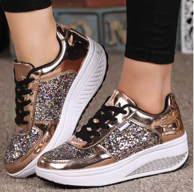 Shoe Craft | Leather colored diamond sequin mirrored rocking shoes casual sports shoes