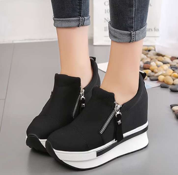 Chinese red canvas shoes loafers thick-soled platform heels invisible height-enhancing casual shoes
